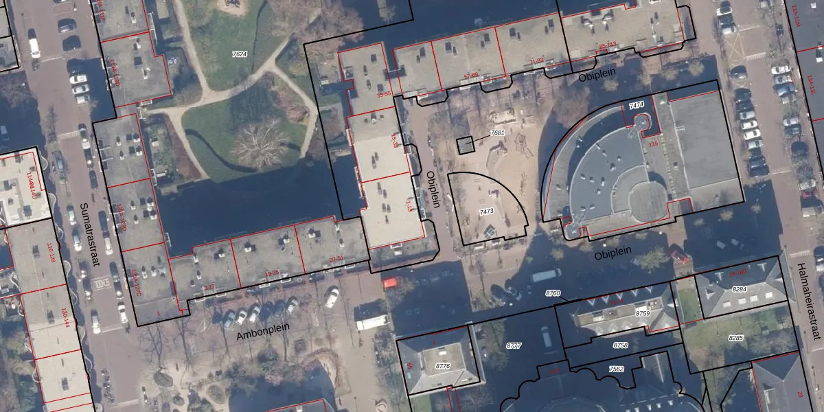 Obiplein 13 is gelegen op kadastraal perceel ASD19W8386. Deze kadastrale aanduiding is uniek en wordt gebruikt door het Kadaster om eigendomsrechten en andere zakelijke rechten vast te leggen. Het perceel maakt onderdeel uit van de kadastrale gemeente Amsterdam.