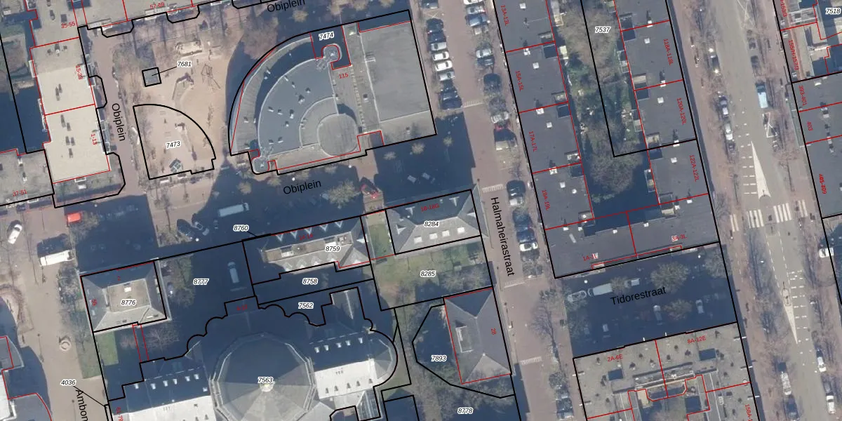 Obiplein 18-B is gelegen op kadastraal perceel ASD19W8284. Deze kadastrale aanduiding is uniek en wordt gebruikt door het Kadaster om eigendomsrechten en andere zakelijke rechten vast te leggen. Het perceel maakt onderdeel uit van de kadastrale gemeente Amsterdam.