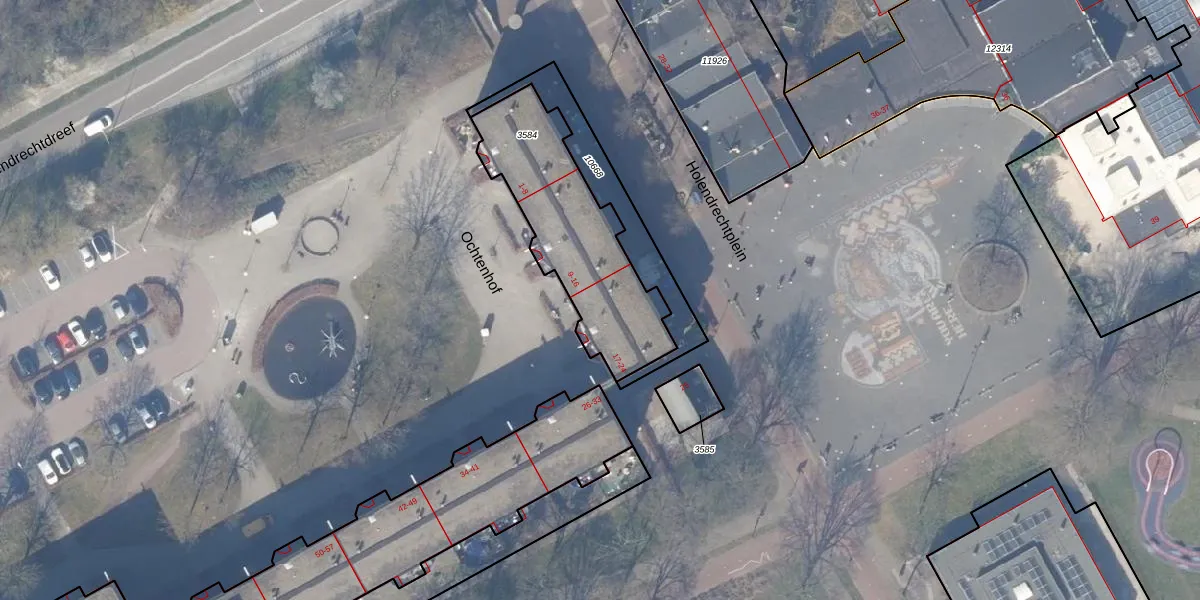 Het perceel waarop Ochtenhof 19 staat heeft een oppervlakte van 649 m². Dit is een groot perceel. De perceeloppervlakte wordt geregistreerd door het Kadaster. Gedetailleerde informatie over de maten van dit perceel kunt u vinden in het rapport Kadastrale kaart met maatvoering van Ochtenhof 19.