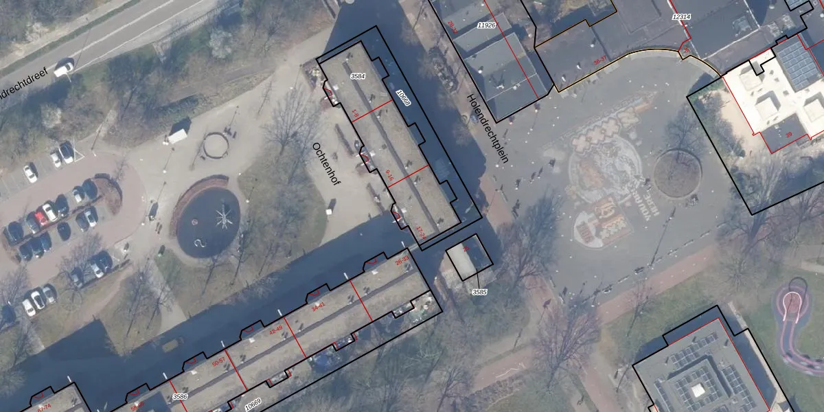 Het perceel waarop Ochtenhof 21 staat heeft een oppervlakte van 649 m². Dit is een groot perceel. De perceeloppervlakte wordt geregistreerd door het Kadaster. Gedetailleerde informatie over de maten van dit perceel kunt u vinden in het rapport Kadastrale kaart met maatvoering van Ochtenhof 21.