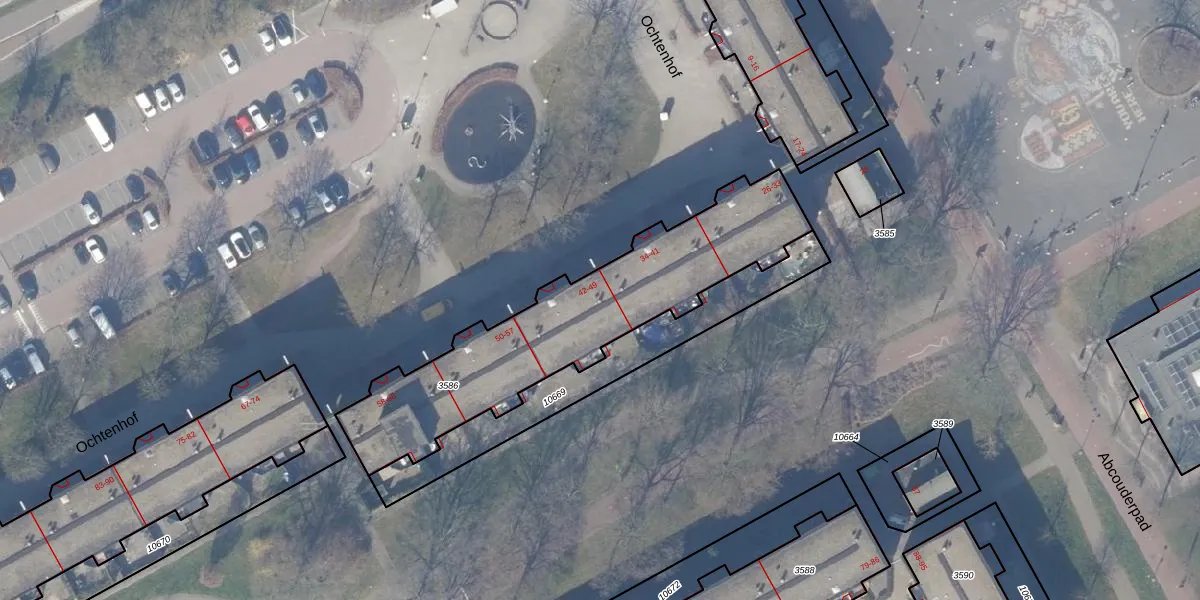 Het perceel waarop Ochtenhof 43 staat heeft een oppervlakte van 1089 m². Dit is een zeer groot perceel. De perceeloppervlakte wordt geregistreerd door het Kadaster. Gedetailleerde informatie over de maten van dit perceel kunt u vinden in het rapport Kadastrale kaart met maatvoering van Ochtenhof 43.
