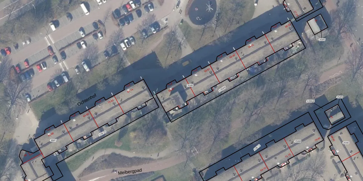 Het perceel waarop Ochtenhof 61 staat heeft een oppervlakte van 1089 m². Dit is een zeer groot perceel. De perceeloppervlakte wordt geregistreerd door het Kadaster. Gedetailleerde informatie over de maten van dit perceel kunt u vinden in het rapport Kadastrale kaart met maatvoering van Ochtenhof 61.