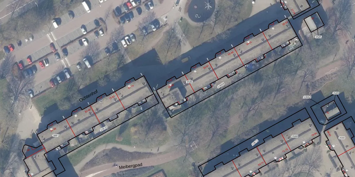 Het perceel waarop Ochtenhof 62 staat heeft een oppervlakte van 1089 m². Dit is een zeer groot perceel. De perceeloppervlakte wordt geregistreerd door het Kadaster. Gedetailleerde informatie over de maten van dit perceel kunt u vinden in het rapport Kadastrale kaart met maatvoering van Ochtenhof 62.