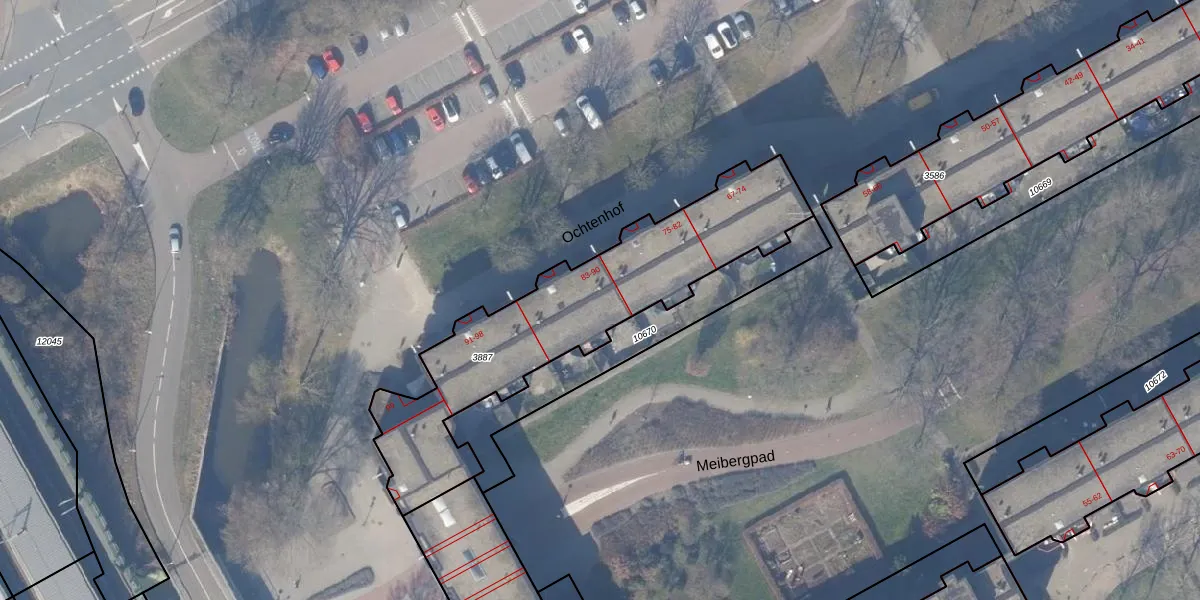 Het perceel waarop Ochtenhof 83 staat heeft een oppervlakte van 1116 m². Dit is een zeer groot perceel. De perceeloppervlakte wordt geregistreerd door het Kadaster. Gedetailleerde informatie over de maten van dit perceel kunt u vinden in het rapport Kadastrale kaart met maatvoering van Ochtenhof 83.