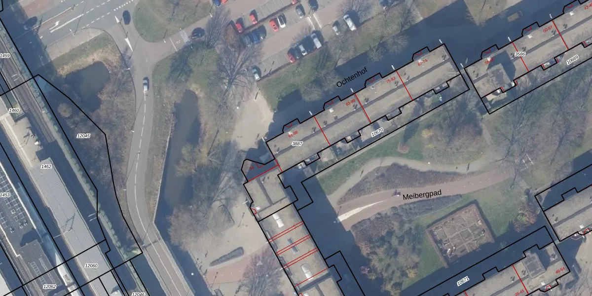 Het perceel waarop Ochtenhof 93 staat heeft een oppervlakte van 1116 m². Dit is een zeer groot perceel. De perceeloppervlakte wordt geregistreerd door het Kadaster. Gedetailleerde informatie over de maten van dit perceel kunt u vinden in het rapport Kadastrale kaart met maatvoering van Ochtenhof 93.