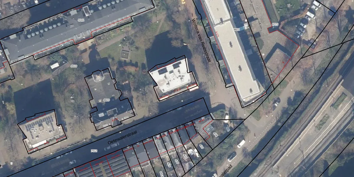 Oetewalerstraat 105 is gelegen op kadastraal perceel ASD15S8630. Deze kadastrale aanduiding is uniek en wordt gebruikt door het Kadaster om eigendomsrechten en andere zakelijke rechten vast te leggen. Het perceel maakt onderdeel uit van de kadastrale gemeente Amsterdam.