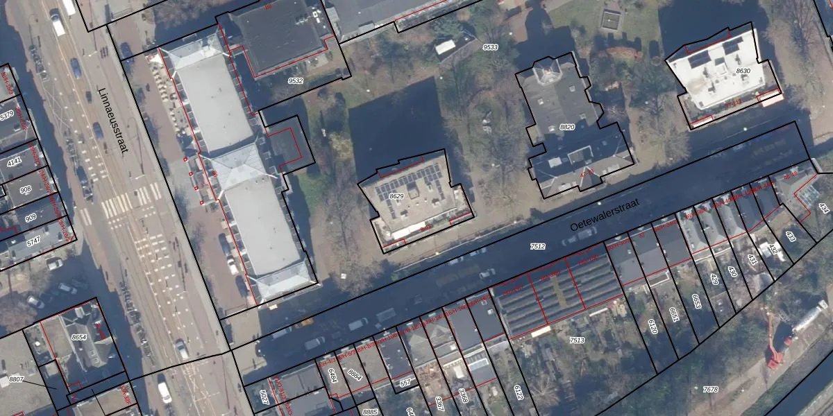 Oetewalerstraat 11 is gelegen op kadastraal perceel ASD15S8629. Deze kadastrale aanduiding is uniek en wordt gebruikt door het Kadaster om eigendomsrechten en andere zakelijke rechten vast te leggen. Het perceel maakt onderdeel uit van de kadastrale gemeente Amsterdam.
