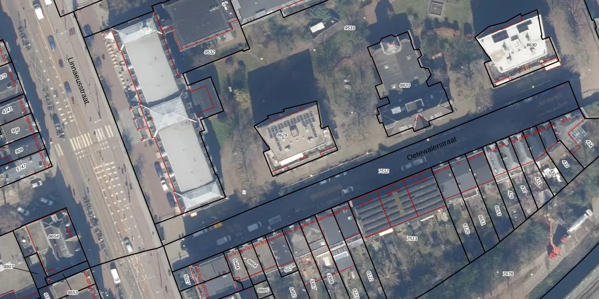 Oetewalerstraat 25 is gelegen op kadastraal perceel ASD15S8629. Deze kadastrale aanduiding is uniek en wordt gebruikt door het Kadaster om eigendomsrechten en andere zakelijke rechten vast te leggen. Het perceel maakt onderdeel uit van de kadastrale gemeente Amsterdam.