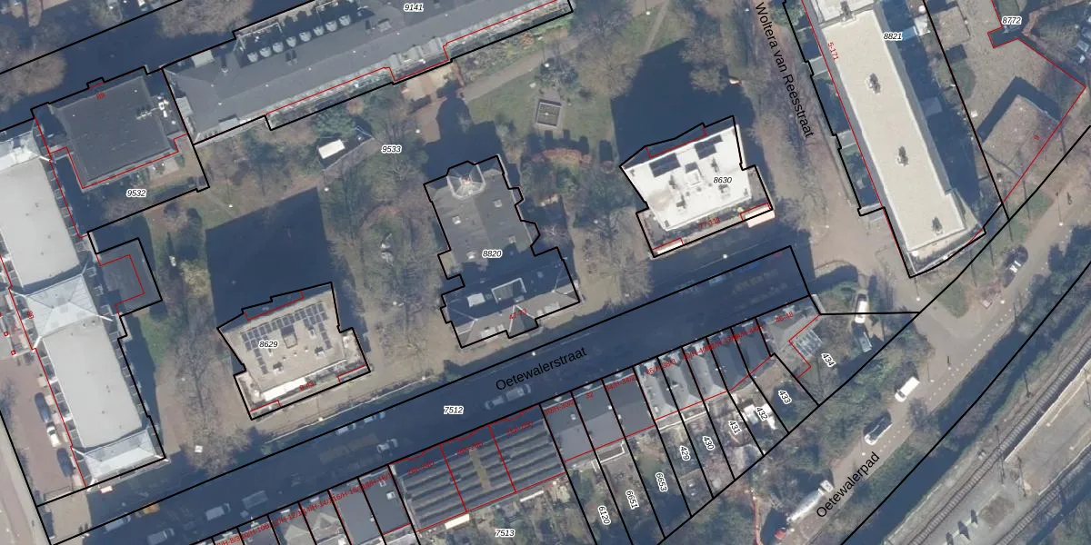 Het perceel waarop Oetewalerstraat 59 staat heeft een oppervlakte van 566 m². Dit is een groot perceel. De perceeloppervlakte wordt geregistreerd door het Kadaster. Gedetailleerde informatie over de maten van dit perceel kunt u vinden in het rapport Kadastrale kaart met maatvoering van Oetewalerstraat 59.