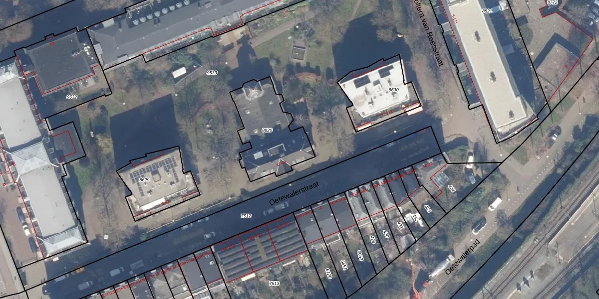 Het perceel waarop Oetewalerstraat 67 staat heeft een oppervlakte van 566 m². Dit is een groot perceel. De perceeloppervlakte wordt geregistreerd door het Kadaster. Gedetailleerde informatie over de maten van dit perceel kunt u vinden in het rapport Kadastrale kaart met maatvoering van Oetewalerstraat 67.
