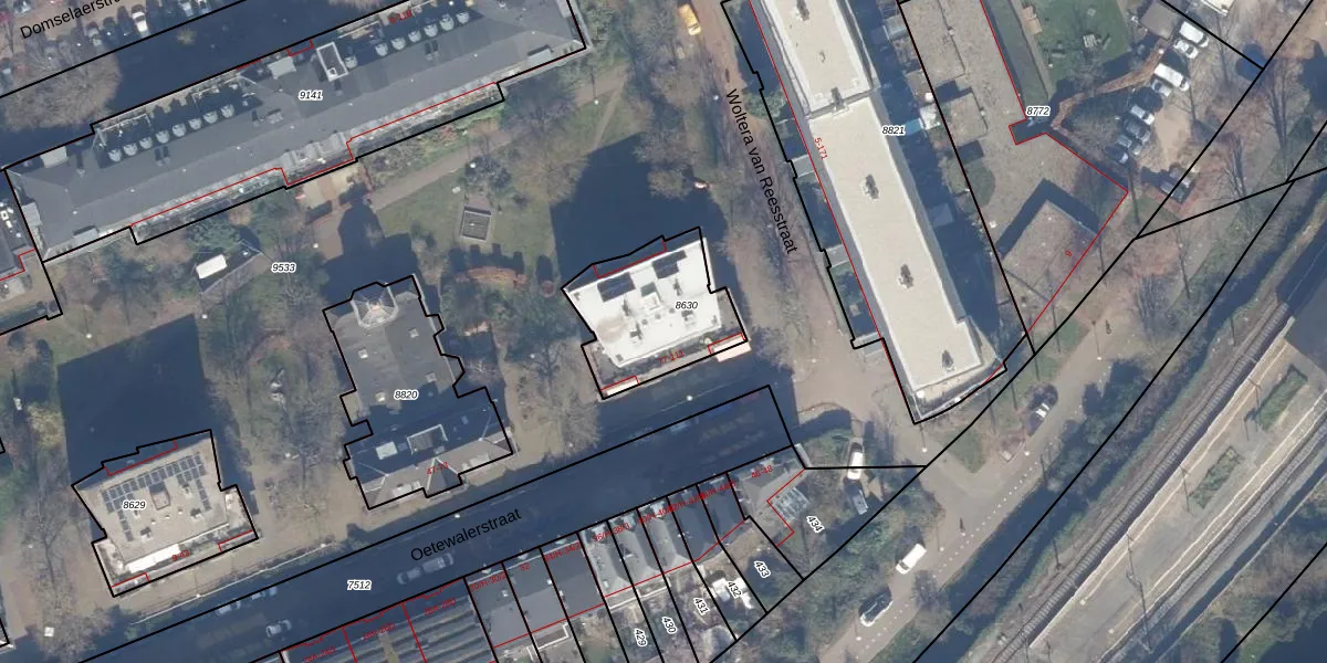 Oetewalerstraat 87 is gelegen op kadastraal perceel ASD15S8630. Deze kadastrale aanduiding is uniek en wordt gebruikt door het Kadaster om eigendomsrechten en andere zakelijke rechten vast te leggen. Het perceel maakt onderdeel uit van de kadastrale gemeente Amsterdam.