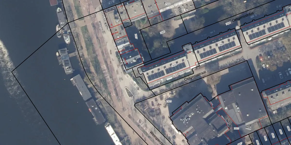 Oetgensstraat 1 is gelegen op kadastraal perceel ASD19W7450. Deze kadastrale aanduiding is uniek en wordt gebruikt door het Kadaster om eigendomsrechten en andere zakelijke rechten vast te leggen. Het perceel maakt onderdeel uit van de kadastrale gemeente Amsterdam.