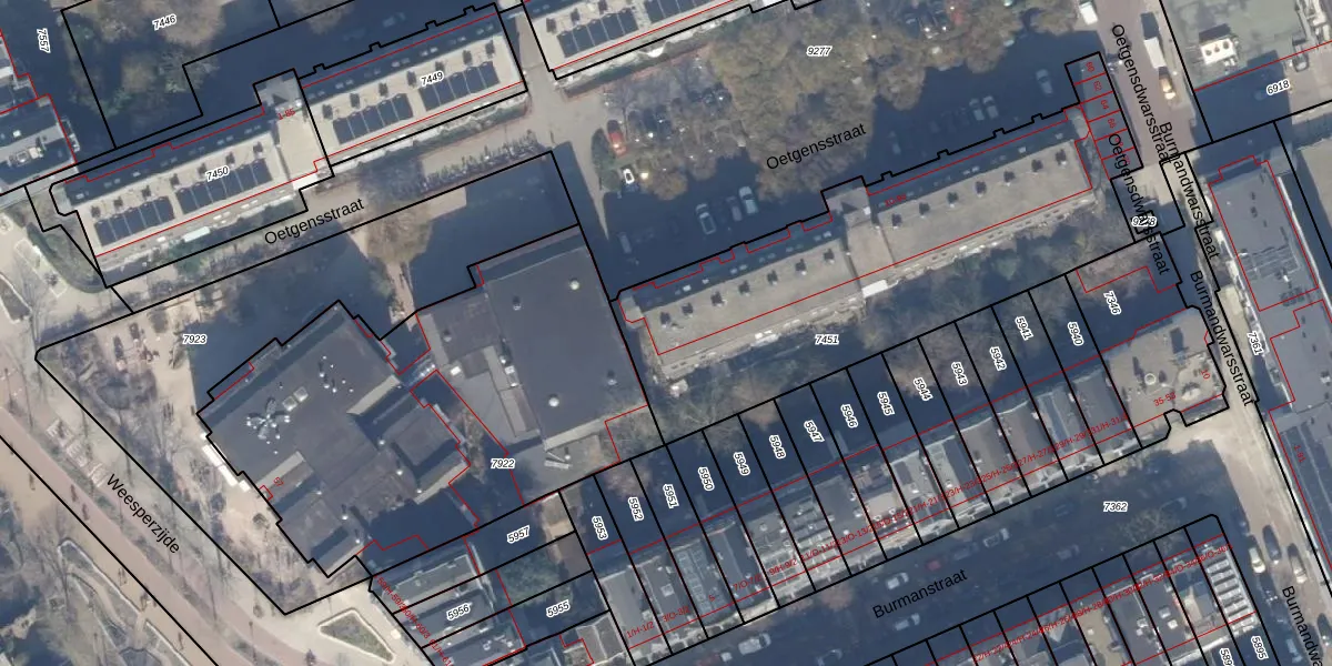 Oetgensstraat 20 is gelegen op kadastraal perceel ASD19W7451. Deze kadastrale aanduiding is uniek en wordt gebruikt door het Kadaster om eigendomsrechten en andere zakelijke rechten vast te leggen. Het perceel maakt onderdeel uit van de kadastrale gemeente Amsterdam.