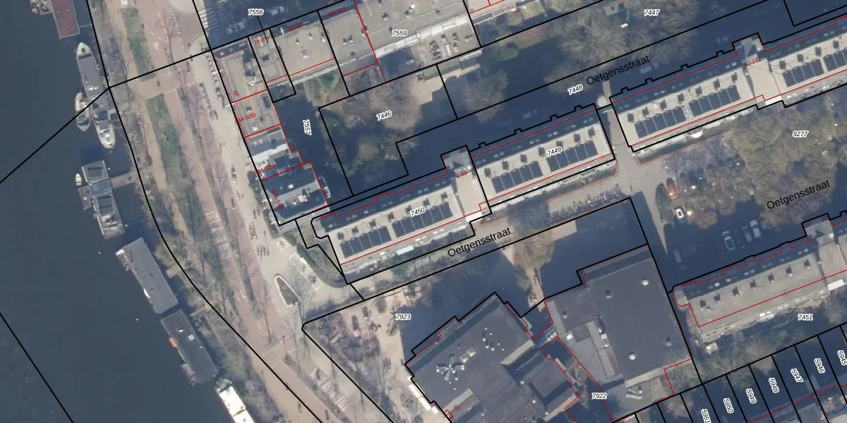 Oetgensstraat 45 is gelegen op kadastraal perceel ASD19W7450. Deze kadastrale aanduiding is uniek en wordt gebruikt door het Kadaster om eigendomsrechten en andere zakelijke rechten vast te leggen. Het perceel maakt onderdeel uit van de kadastrale gemeente Amsterdam.