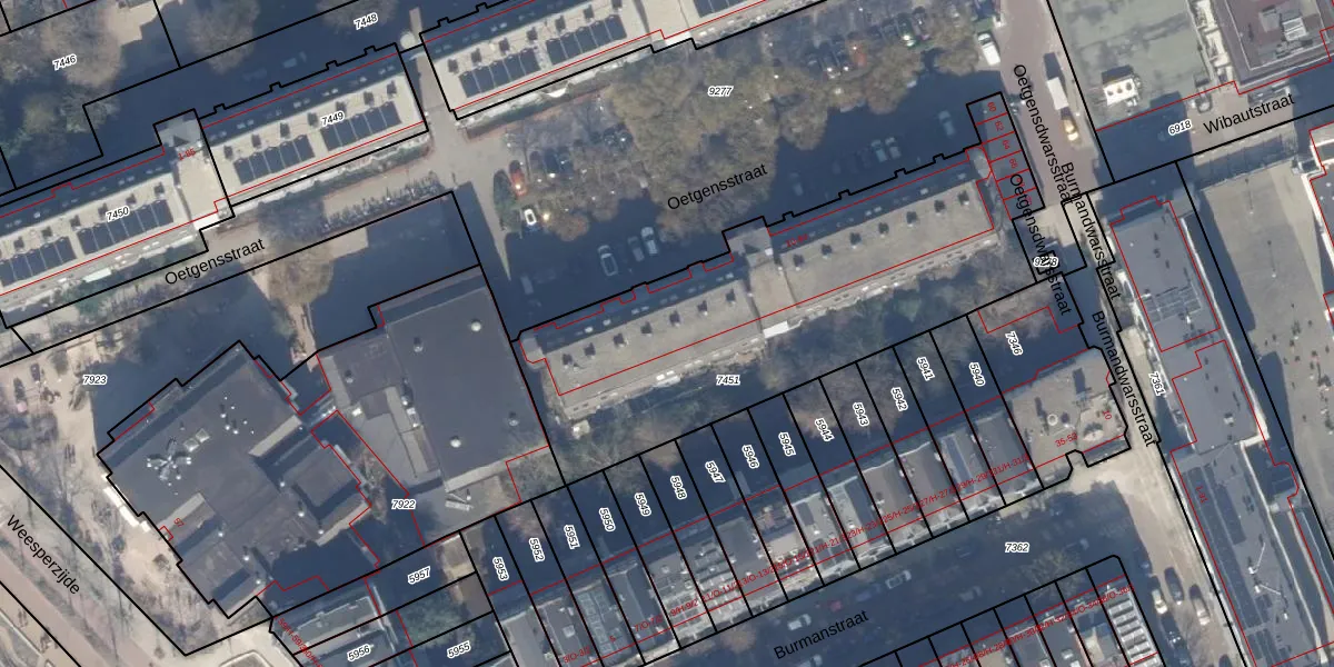 Oetgensstraat 50 is gelegen op kadastraal perceel ASD19W7451. Deze kadastrale aanduiding is uniek en wordt gebruikt door het Kadaster om eigendomsrechten en andere zakelijke rechten vast te leggen. Het perceel maakt onderdeel uit van de kadastrale gemeente Amsterdam.