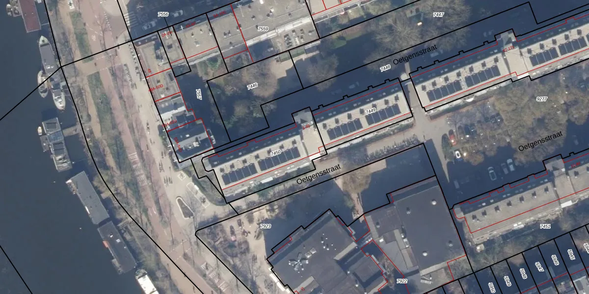 Oetgensstraat 53 is gelegen op kadastraal perceel ASD19W7450. Deze kadastrale aanduiding is uniek en wordt gebruikt door het Kadaster om eigendomsrechten en andere zakelijke rechten vast te leggen. Het perceel maakt onderdeel uit van de kadastrale gemeente Amsterdam.