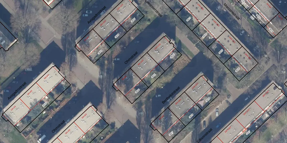 Het perceel waarop Ohmstraat 9-H staat heeft een oppervlakte van 288 m². Dit is een middelgroot perceel. De perceeloppervlakte wordt geregistreerd door het Kadaster. Gedetailleerde informatie over de maten van dit perceel kunt u vinden in het rapport Kadastrale kaart met maatvoering van Ohmstraat 9-H.