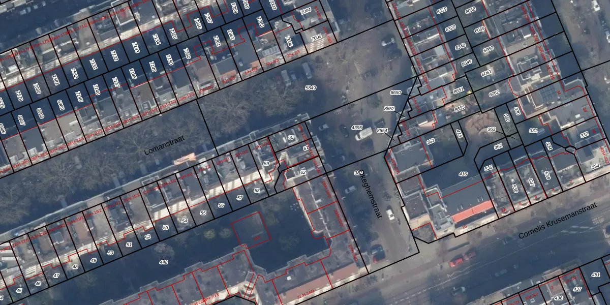 Het perceel waarop het adres ligt is ASD24-AC-61. De afkorting 'ASD24' staat voor kadastrale gemeente Amsterdam. De gemiddelde perceelgrootte in Amsterdam is 1365,99 m². Dit perceel is kleiner: de perceeloppervlakte bedraagt 81 m². De grootste perceeloppervlakte in de kadastrale gemeente is 11,7 ha. De kleinste oppervlakte bedraagt 1 m². Op het perceel liggen in totaal 3 adressen. In de Basisregistratie Kadaster (BRK) werden de grenzen van het perceel geregistreerd op 28-09-2006.