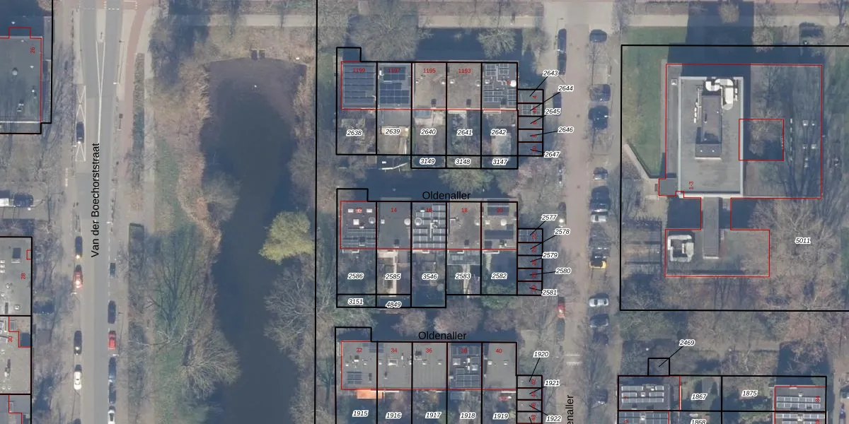 Gebruik de zoekbalk of klik op een perceel voor informatie over de adressen binnen dit perceel.