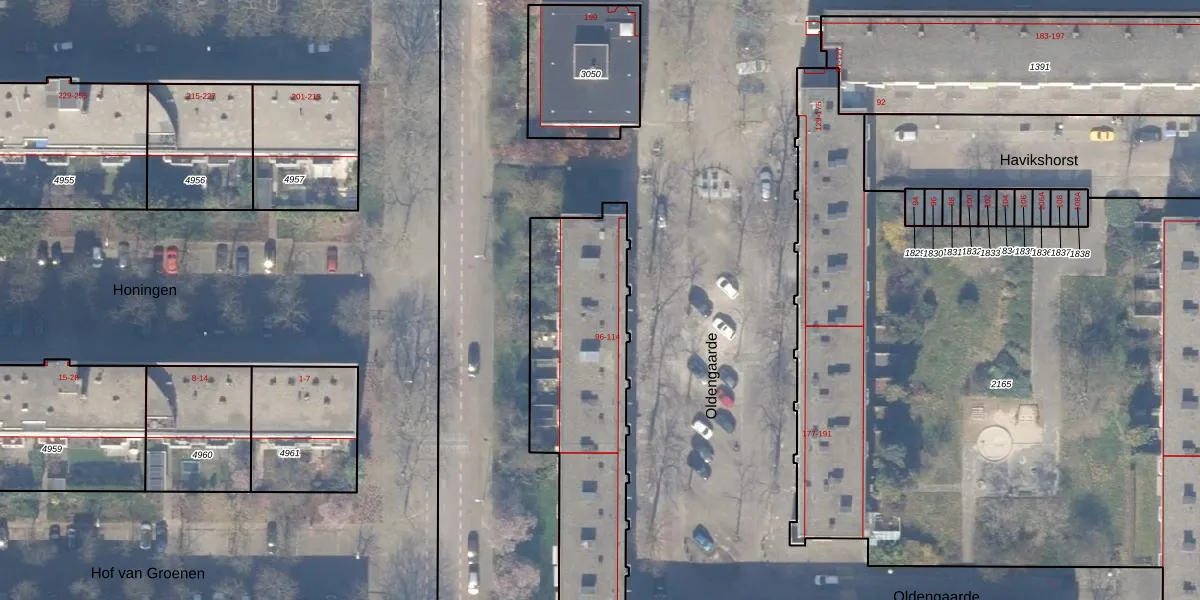 Het perceel waarop Oldengaarde 102 staat heeft een oppervlakte van 2106 m². Dit is een zeer groot perceel. De perceeloppervlakte wordt geregistreerd door het Kadaster. Gedetailleerde informatie over de maten van dit perceel kunt u vinden in het rapport Kadastrale kaart met maatvoering van Oldengaarde 102.