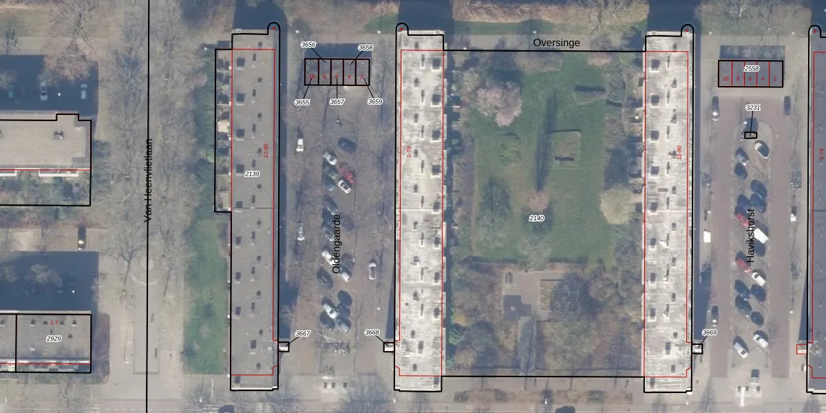 Het perceel waarop Oldengaarde 17 staat heeft een oppervlakte van 5859 m². Dit is een zeer groot perceel. De perceeloppervlakte wordt geregistreerd door het Kadaster. Gedetailleerde informatie over de maten van dit perceel kunt u vinden in het rapport Kadastrale kaart met maatvoering van Oldengaarde 17.