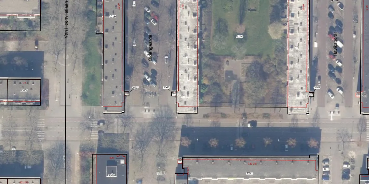 Het perceel waarop Oldengaarde 61 staat heeft een oppervlakte van 5859 m². Dit is een zeer groot perceel. De perceeloppervlakte wordt geregistreerd door het Kadaster. Gedetailleerde informatie over de maten van dit perceel kunt u vinden in het rapport Kadastrale kaart met maatvoering van Oldengaarde 61.