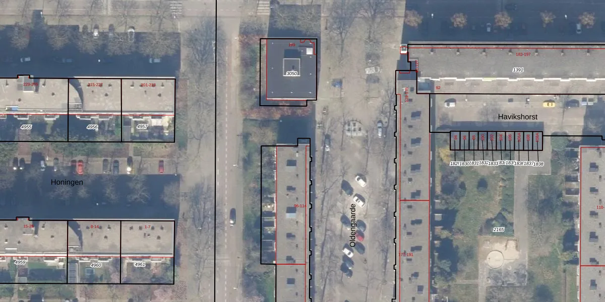 Het perceel waarop Oldengaarde 96 staat heeft een oppervlakte van 2106 m². Dit is een zeer groot perceel. De perceeloppervlakte wordt geregistreerd door het Kadaster. Gedetailleerde informatie over de maten van dit perceel kunt u vinden in het rapport Kadastrale kaart met maatvoering van Oldengaarde 96.