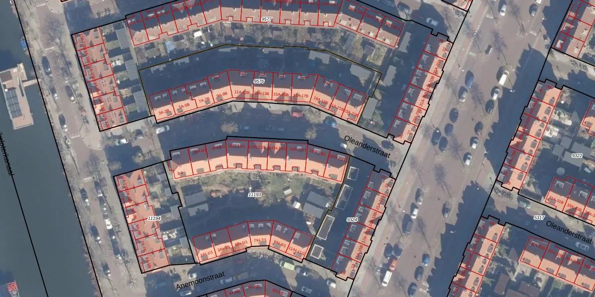 Oleanderstraat 16-H is gelegen op kadastraal perceel ASD07K11193. Deze kadastrale aanduiding is uniek en wordt gebruikt door het Kadaster om eigendomsrechten en andere zakelijke rechten vast te leggen. Het perceel maakt onderdeel uit van de kadastrale gemeente Amsterdam.