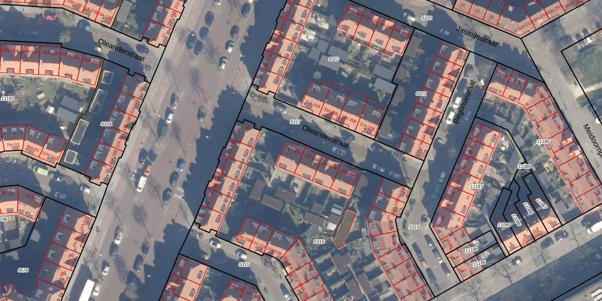 Oleanderstraat 30-B is gelegen op kadastraal perceel ASD07K5316. Deze kadastrale aanduiding is uniek en wordt gebruikt door het Kadaster om eigendomsrechten en andere zakelijke rechten vast te leggen. Het perceel maakt onderdeel uit van de kadastrale gemeente Amsterdam.
