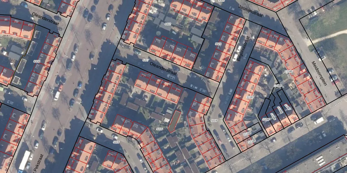 Oleanderstraat 36-B is gelegen op kadastraal perceel ASD07K5316. Deze kadastrale aanduiding is uniek en wordt gebruikt door het Kadaster om eigendomsrechten en andere zakelijke rechten vast te leggen. Het perceel maakt onderdeel uit van de kadastrale gemeente Amsterdam.