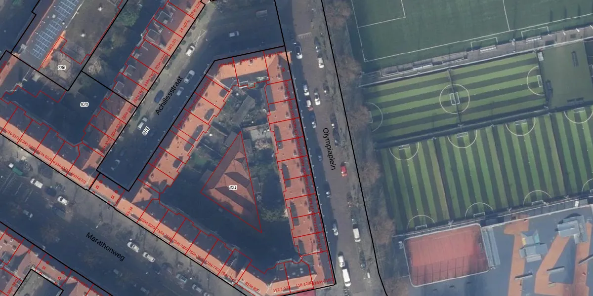 Het perceel waarop Olympiaplein 104-2 staat heeft een oppervlakte van 3907 m². Dit is een zeer groot perceel. De perceeloppervlakte wordt geregistreerd door het Kadaster. Gedetailleerde informatie over de maten van dit perceel kunt u vinden in het rapport Kadastrale kaart met maatvoering van Olympiaplein 104-2.