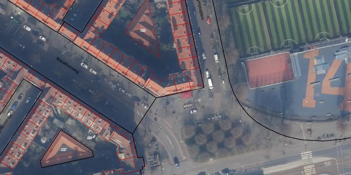 Het perceel waarop Olympiaplein 122-2 staat heeft een oppervlakte van 3907 m². Dit is een zeer groot perceel. De perceeloppervlakte wordt geregistreerd door het Kadaster. Gedetailleerde informatie over de maten van dit perceel kunt u vinden in het rapport Kadastrale kaart met maatvoering van Olympiaplein 122-2.