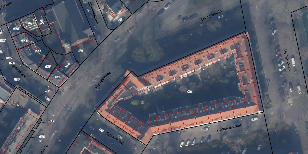 Olympiaplein 14-A-1 is gelegen op kadastraal perceel ASD24AC832. Deze kadastrale aanduiding is uniek en wordt gebruikt door het Kadaster om eigendomsrechten en andere zakelijke rechten vast te leggen. Het perceel maakt onderdeel uit van de kadastrale gemeente Amsterdam.