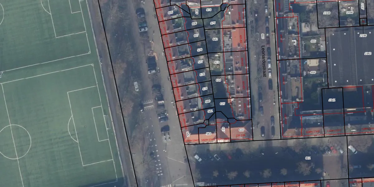 Het adres ligt op het perceel ASD24-AC-579, dat zich in de kadastrale gemeente Amsterdam bevindt. Het perceel is 149 m² groot. Dat is kleiner dan de gemiddelde perceeloppervlakte in Amsterdam, dat op 1365,99 m² ligt. Het grootste perceel in de kadastrale gemeente is 11,7 ha. Het kleinste perceel heeft een oppervlakte van 1 m². Er zijn 3 adressen aanwezig op het perceel. De huidige grenzen van het perceel zijn digitaal in de Basisregistratie Kadaster (BRK) geregistreerd op 04-10-2006.