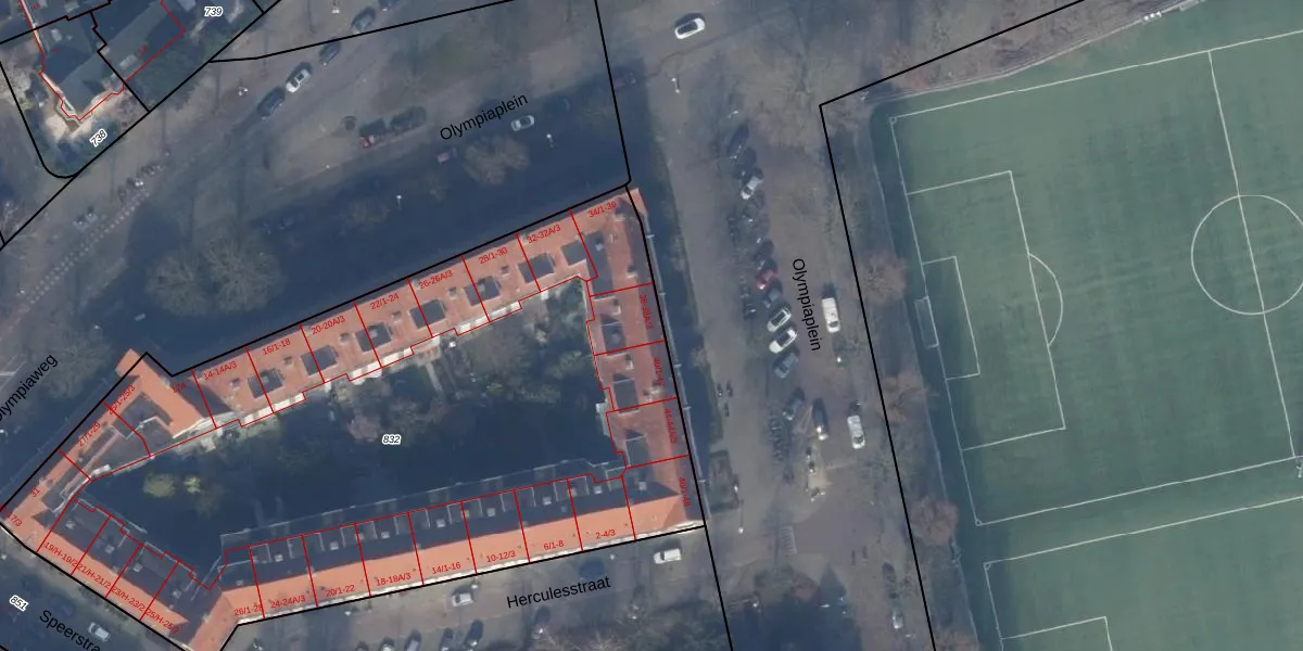 Olympiaplein 38-A-3 is gelegen op kadastraal perceel ASD24AC832. Deze kadastrale aanduiding is uniek en wordt gebruikt door het Kadaster om eigendomsrechten en andere zakelijke rechten vast te leggen. Het perceel maakt onderdeel uit van de kadastrale gemeente Amsterdam.