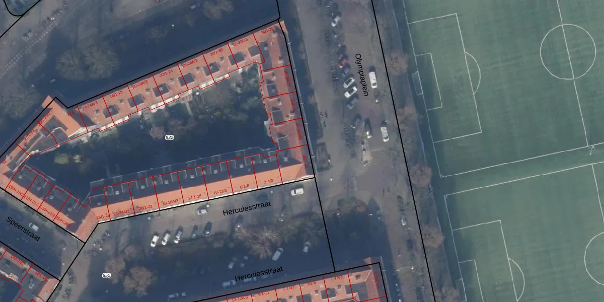 Het perceel waarop Olympiaplein 46-2 staat heeft een oppervlakte van 4379 m². Dit is een zeer groot perceel. De perceeloppervlakte wordt geregistreerd door het Kadaster. Gedetailleerde informatie over de maten van dit perceel kunt u vinden in het rapport Kadastrale kaart met maatvoering van Olympiaplein 46-2.