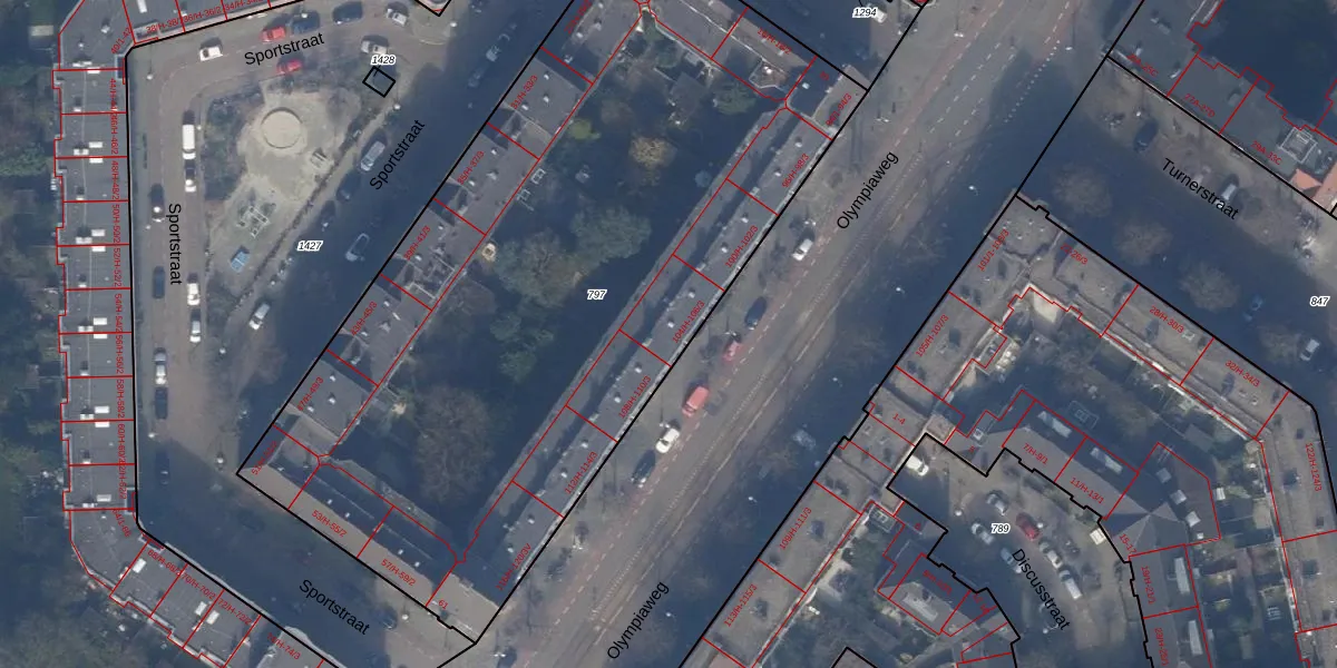 Olympiaweg 106-1 is gelegen op kadastraal perceel ASD24AC797. Deze kadastrale aanduiding is uniek en wordt gebruikt door het Kadaster om eigendomsrechten en andere zakelijke rechten vast te leggen. Het perceel maakt onderdeel uit van de kadastrale gemeente Amsterdam.