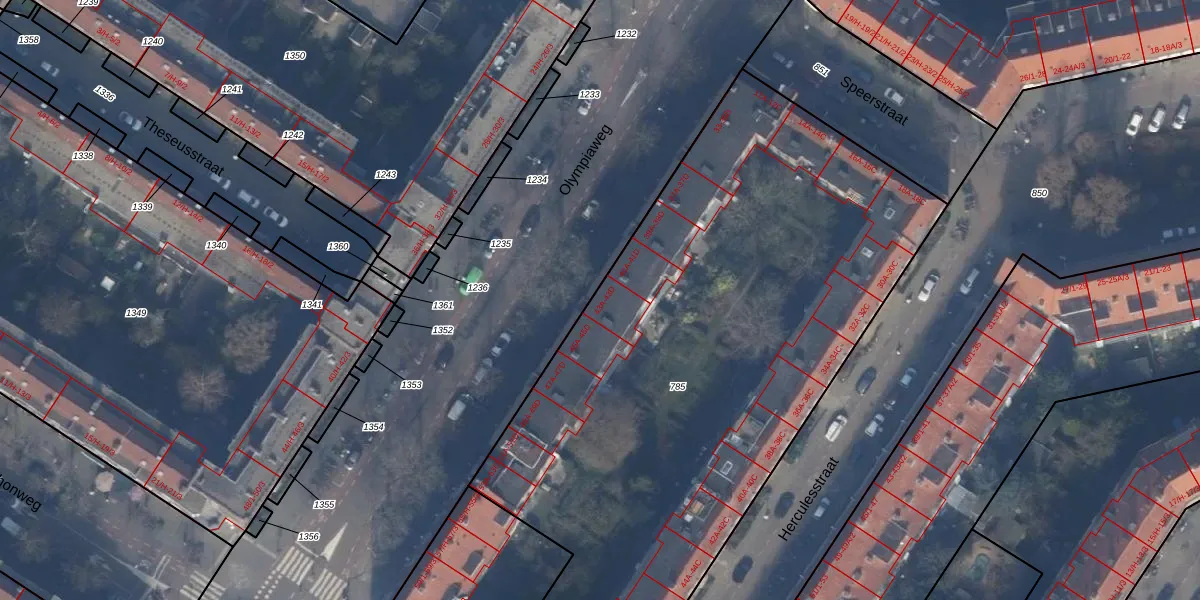 Olympiaweg 43-D is gelegen op kadastraal perceel ASD24AC785. Deze kadastrale aanduiding is uniek en wordt gebruikt door het Kadaster om eigendomsrechten en andere zakelijke rechten vast te leggen. Het perceel maakt onderdeel uit van de kadastrale gemeente Amsterdam.