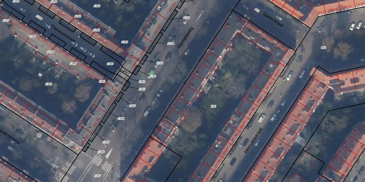 Olympiaweg 45-A is gelegen op kadastraal perceel ASD24AC785. Deze kadastrale aanduiding is uniek en wordt gebruikt door het Kadaster om eigendomsrechten en andere zakelijke rechten vast te leggen. Het perceel maakt onderdeel uit van de kadastrale gemeente Amsterdam.