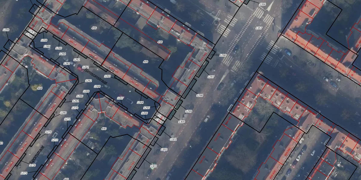 Het perceel waarop het adres ligt is ASD24-AC-498. De afkorting 'ASD24' staat voor kadastrale gemeente Amsterdam. De oppervlakte van het perceel is 1367 m². Dat is groter dan gemiddeld in Amsterdam, waar de gemiddelde perceeloppervlakte op 1365,99 m² ligt. Het kleinste perceel in de kadastrale gemeente is 1 m² groot. De grootste perceeloppervlakte is 11,7 ha. Op het perceel liggen in totaal 43 adressen. In de Basisregistratie Kadaster (BRK) werden de grenzen van het perceel geregistreerd op 30-11-2010.