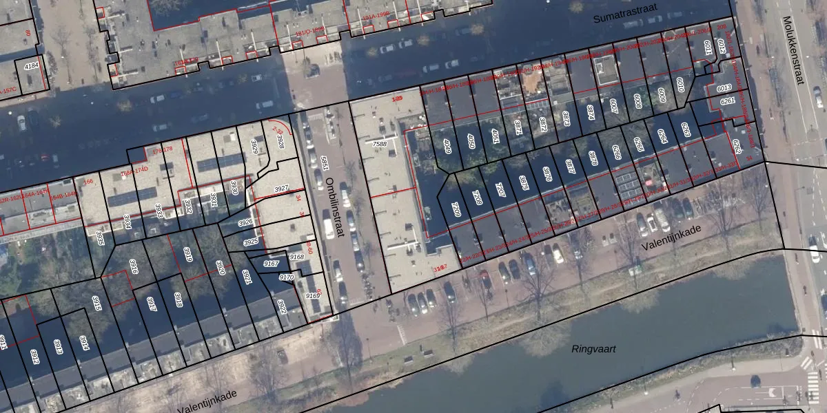 Het perceel waarop Ombilinstraat 33 staat heeft een oppervlakte van 816 m². Dit is een groot perceel. De perceeloppervlakte wordt geregistreerd door het Kadaster. Gedetailleerde informatie over de maten van dit perceel kunt u vinden in het rapport Kadastrale kaart met maatvoering van Ombilinstraat 33.