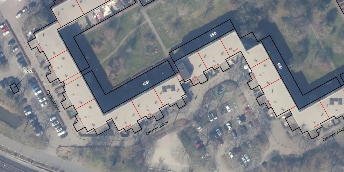 Het perceel waarop Ommerenhof 23 staat heeft een oppervlakte van 1,2 ha. Dit is een zeer groot perceel. De perceeloppervlakte wordt geregistreerd door het Kadaster. Gedetailleerde informatie over de maten van dit perceel kunt u vinden in het rapport Kadastrale kaart met maatvoering van Ommerenhof 23.