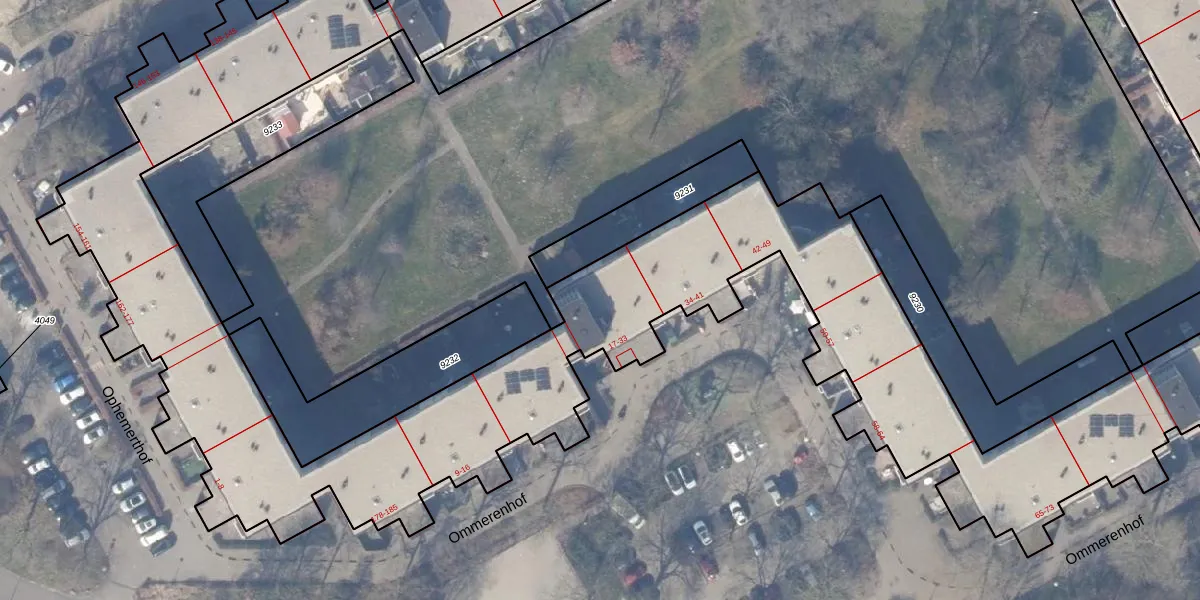 Het perceel waarop Ommerenhof 26 staat heeft een oppervlakte van 1,2 ha. Dit is een zeer groot perceel. De perceeloppervlakte wordt geregistreerd door het Kadaster. Gedetailleerde informatie over de maten van dit perceel kunt u vinden in het rapport Kadastrale kaart met maatvoering van Ommerenhof 26.