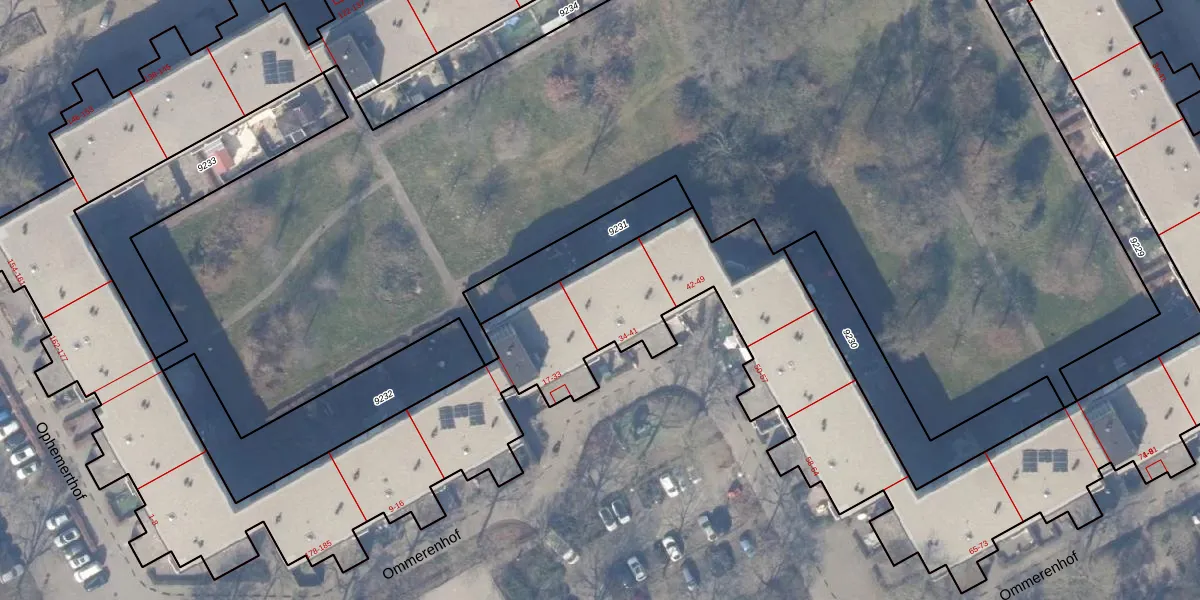 Het perceel waarop Ommerenhof 34 staat heeft een oppervlakte van 1,2 ha. Dit is een zeer groot perceel. De perceeloppervlakte wordt geregistreerd door het Kadaster. Gedetailleerde informatie over de maten van dit perceel kunt u vinden in het rapport Kadastrale kaart met maatvoering van Ommerenhof 34.