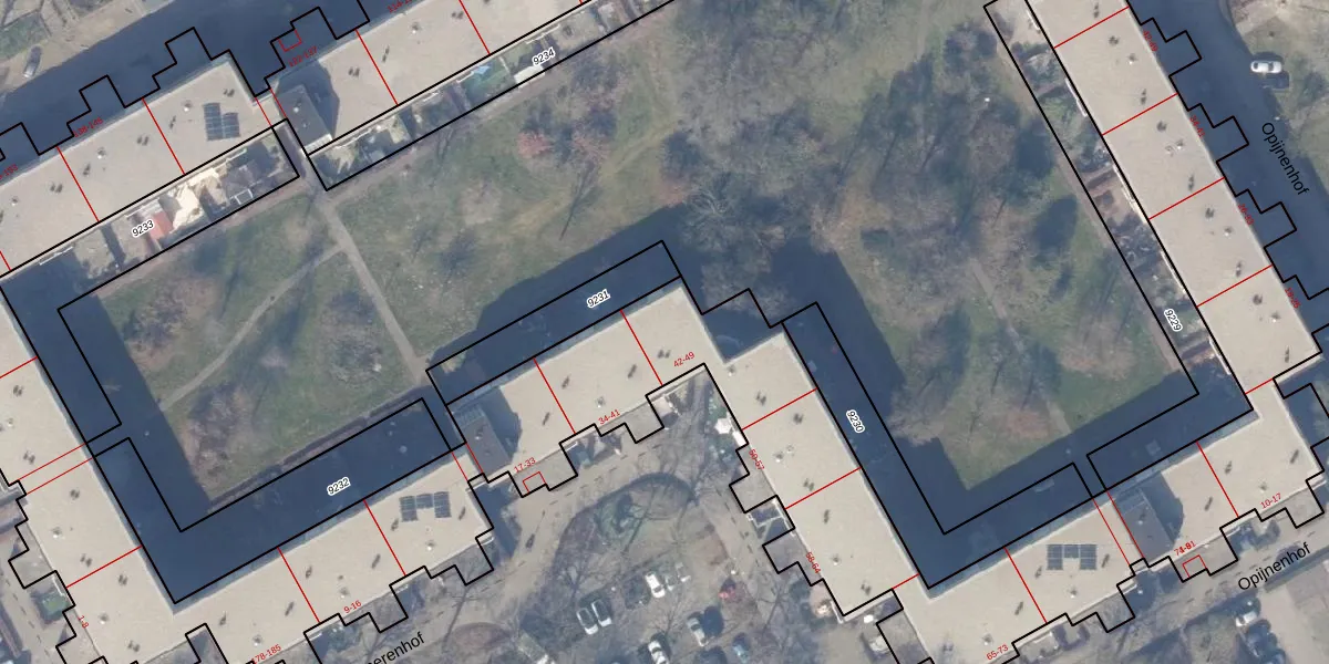 Het perceel waarop Ommerenhof 44 staat heeft een oppervlakte van 1,2 ha. Dit is een zeer groot perceel. De perceeloppervlakte wordt geregistreerd door het Kadaster. Gedetailleerde informatie over de maten van dit perceel kunt u vinden in het rapport Kadastrale kaart met maatvoering van Ommerenhof 44.