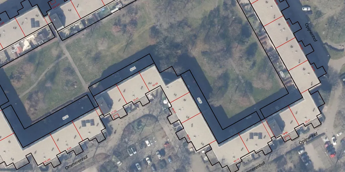 Het perceel waarop Ommerenhof 47 staat heeft een oppervlakte van 1,2 ha. Dit is een zeer groot perceel. De perceeloppervlakte wordt geregistreerd door het Kadaster. Gedetailleerde informatie over de maten van dit perceel kunt u vinden in het rapport Kadastrale kaart met maatvoering van Ommerenhof 47.
