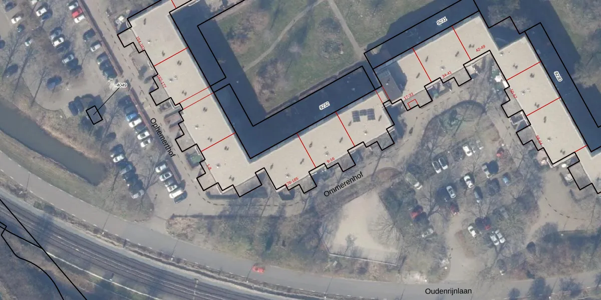 Het perceel waarop Ommerenhof 5 staat heeft een oppervlakte van 1,2 ha. Dit is een zeer groot perceel. De perceeloppervlakte wordt geregistreerd door het Kadaster. Gedetailleerde informatie over de maten van dit perceel kunt u vinden in het rapport Kadastrale kaart met maatvoering van Ommerenhof 5.