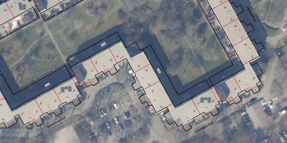 Het perceel waarop Ommerenhof 52 staat heeft een oppervlakte van 1,2 ha. Dit is een zeer groot perceel. De perceeloppervlakte wordt geregistreerd door het Kadaster. Gedetailleerde informatie over de maten van dit perceel kunt u vinden in het rapport Kadastrale kaart met maatvoering van Ommerenhof 52.