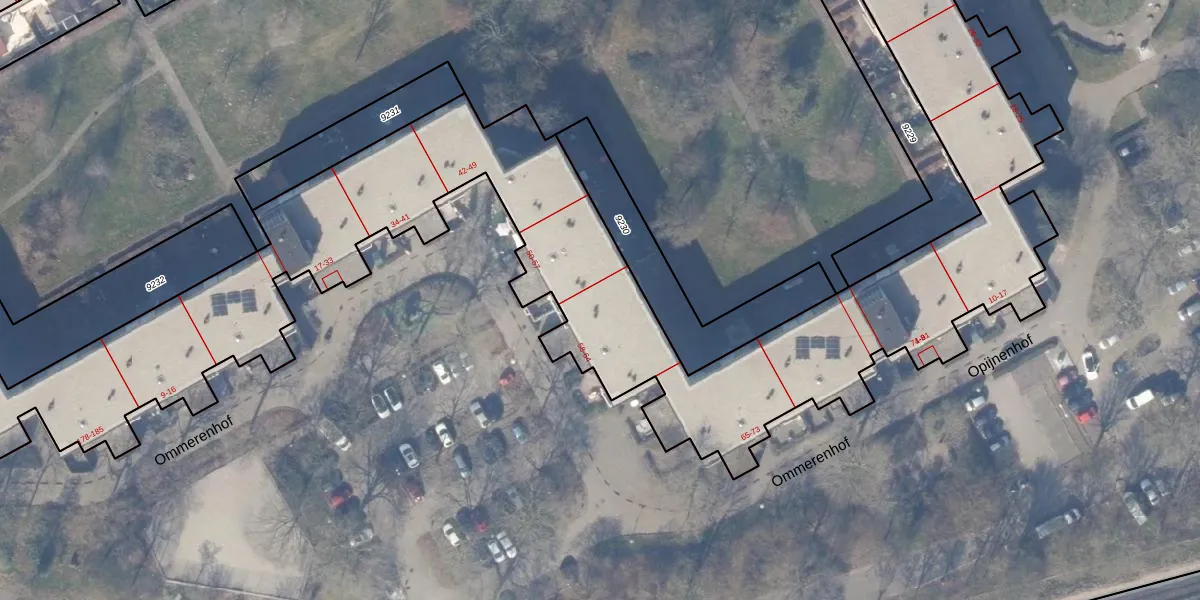 Het perceel waarop Ommerenhof 59 staat heeft een oppervlakte van 1,2 ha. Dit is een zeer groot perceel. De perceeloppervlakte wordt geregistreerd door het Kadaster. Gedetailleerde informatie over de maten van dit perceel kunt u vinden in het rapport Kadastrale kaart met maatvoering van Ommerenhof 59.