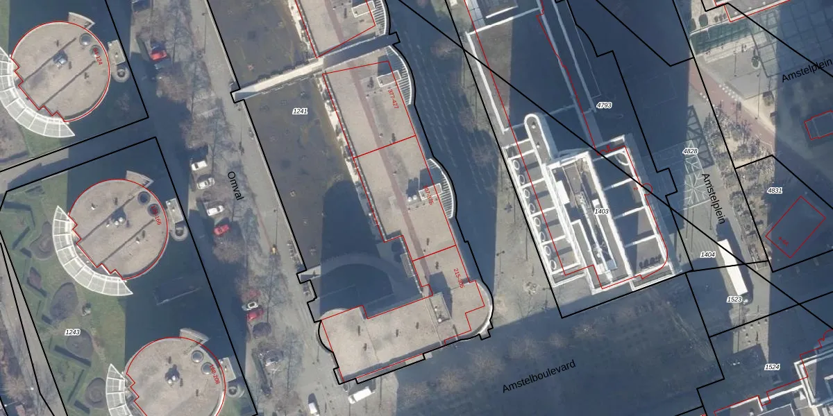 Het perceel waarop het adres ligt is ASD27-AG-1241. De afkorting 'ASD27' staat voor kadastrale gemeente Amsterdam. Het perceel is met 4769 m² relatief groot. Het gemiddelde ligt in de kadastrale gemeente Amsterdam op 3556,63 m². Het kleinste perceel in de kadastrale gemeente is 1 m² groot. De grootste perceeloppervlakte is 18,4 ha. Er zijn 130 adressen aanwezig op het perceel. De huidige grenzen van het perceel zijn digitaal in de Basisregistratie Kadaster (BRK) geregistreerd op 22-01-2007.